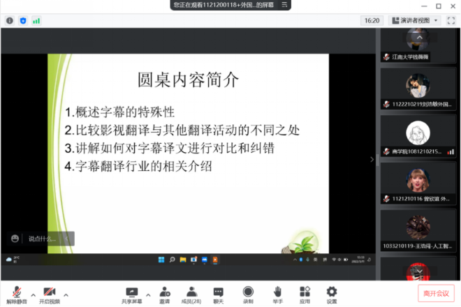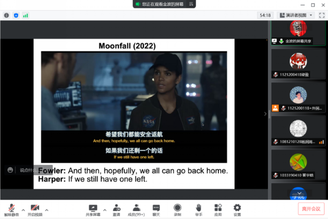 金波老师线上进行“影视字幕介与谈”主题圆桌会,会议持续90余分钟,吸引来自91社区