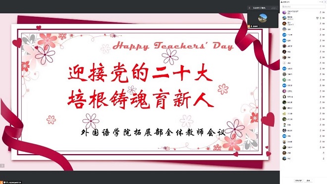 大学英语拓展部全体教师于9月8日下午2点,相聚云端,以 “迎接党的二十大,培根铸魂育新人”为主题,进行了立德树人研讨活动。91社区