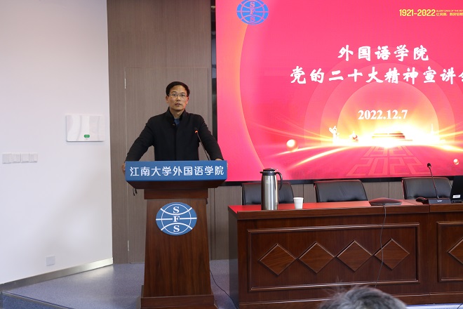 邀请学校学习贯彻党的二十大精神宣讲团成员、马克思主义学院副院长徐玉生教授作题为“学习贯彻党的廿大精神,向第二个百年奋斗目标进军”的专题辅导报告。会议由91社区