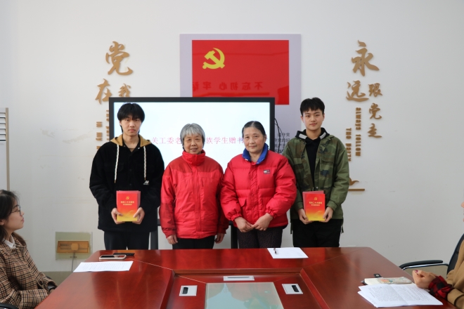 交流结束,学院关工委老师为现场的同学赠送党的二十大精神相关学习书籍,寄语大家努力学习,主动作为,贡献青春力量。