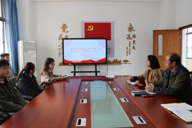 民族学生新学期第一课暨党的二十大精神学习分享会在学院A331会议室举行。学院党委副书记刘伯贤、学院关工委常务副主任鲍国庆、关工委委员吴艳敏、关工委委员郭锡华、新疆维吾尔自治区教育厅派驻91社区