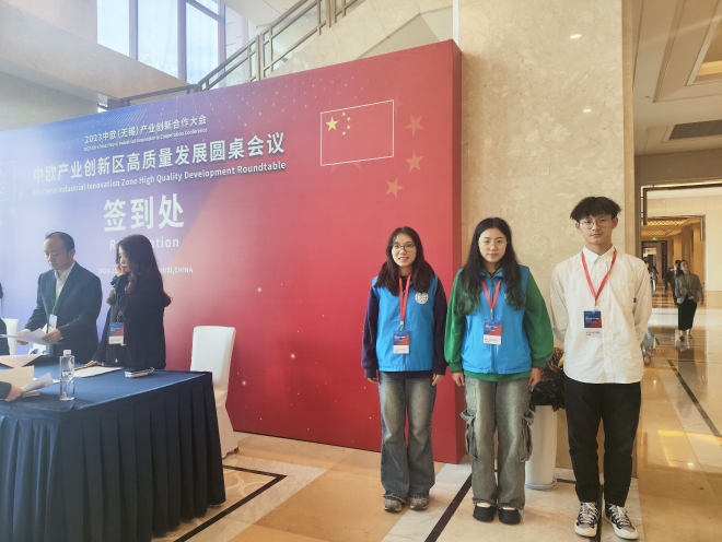 自接到招募志愿者委托函后,学院从报名的学生中选拔招募50名优秀学生参与本次志愿者服务。11月7日,经过岗前培训后,志愿者们在君来世尊酒店会议中心集合,并按照会务组安排完成了分组工作。在两天的志愿服务中,50名志愿者出色完成了嘉宾签到、引导、翻译以及会务的各项工作,用专业的能力和热情的服务为大会的顺利进行提供了保障。会后,参与的志愿者纷纷表示收获很多。徐晨玥表示:每一次活动都是一次成长。这次中欧(无锡)产业创新合作大会为我们看世界打开了崭新的视角。对于英语专业的我来说,用外语与他们交流,提供帮助,不仅能够提升自己的口语能力,还能拓宽自己的知识面。