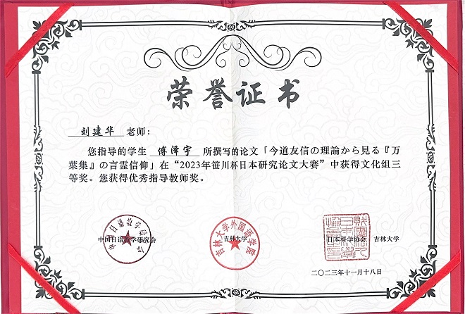 2023年11月18日,“2023年笹川杯日本研究论文大赛”在吉林大学圆满落幕。我校20级日语专业学生傅泽宇冲进决赛,最终荣获文化