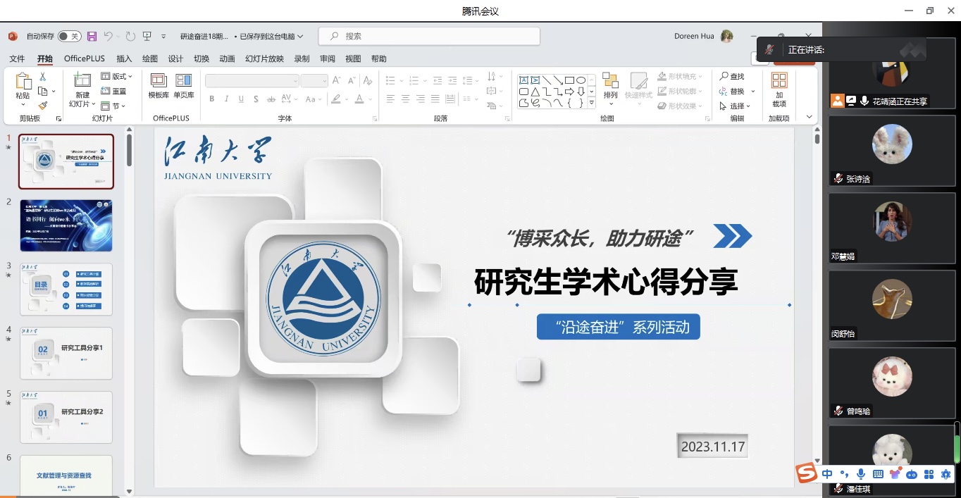 “研途奋进”第十一期活动在腾讯会议平台成功举行,本次活动主题为“博采众长,助力研途”学术生活心得分享会。22、23级硕士研究生线上参与了本次活动。