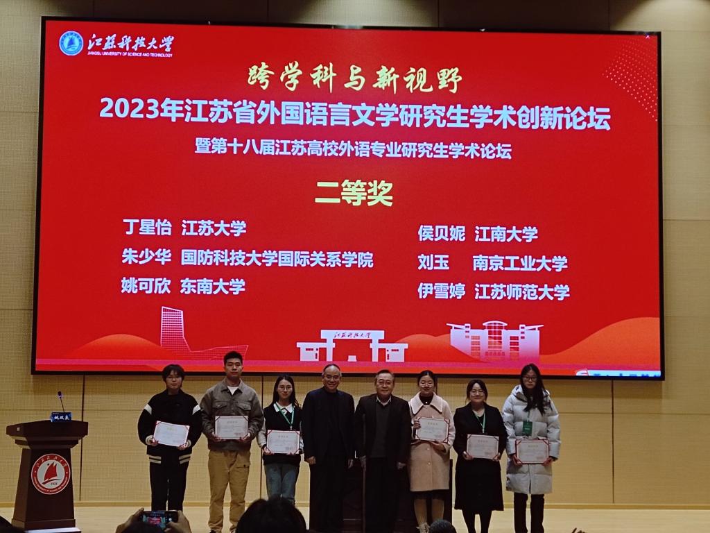 参与的三名硕士研究生在江苏外国语言文学研究生学术创新论坛和江苏高校外语专业研究生学术论坛都获奖了,其中,侯贝妮获得二等奖,朱知微、袁安雪获得三等奖。