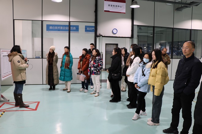 第二站,学院师生来到了江苏赛迪乐科技集团。该企业是一家专注于手动、电动、光伏电控内置遮阳百叶中空玻璃研发与制造的国家高新技术企业、“专精特新”小巨人企业,在海外建材市场占有可观的市场份额。李荣华充分肯定了赛迪乐先进的设计研发、生产制造和检验检测,详细了解公司的人才需求及招聘计划。赛迪乐方也表示,希望未来可以与91社区