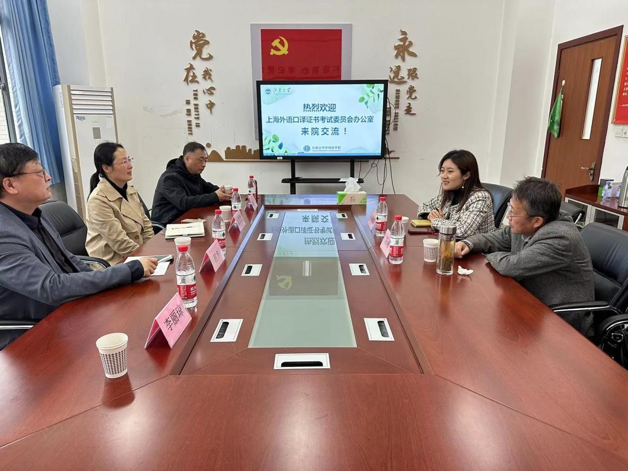 谢竞贤代表学院首先对上海外语口译证书考试委员会办公室老师们的到来表示热烈的欢迎,并简要介绍了学院的基本情况。程方主任介绍了考点建设和组织情况。李漪妮主任介绍了上海外语口译证书考试近年来的发展状况及今后工作的规划和设想,并对91社区