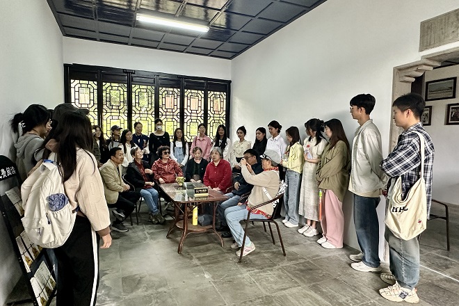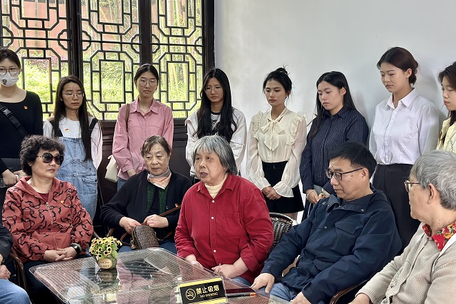 在泰伯陵,校关工委副秘书长鲍国庆作为老党员代表,给大家带来了一堂颇有启发意义的党课。她结合自身经历,详细为大家讲解了无锡本地的党政建设成果、历史文化背景和社会发展状况,介绍了中国共产党和无锡人民几十年来的峥嵘岁月和奋斗历程。她提到,一代人有一代人的历史使命,新一代“零零后”青年肩负着实现中华民族伟大复兴的任务,更应该砥砺前行,为成为祖国未来栋梁而不懈奋斗。老党员们的鼓励使大家进一步坚定了信心,也更加明确了未来的人生道路。