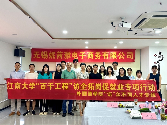 党委书记李荣华、党委副书记刘伯贤、辅导员苗文建、朱家烨以及研究生、本科生代表前往无锡妮茜雅电子商务有限公司开展访企拓岗促就业专项活动。