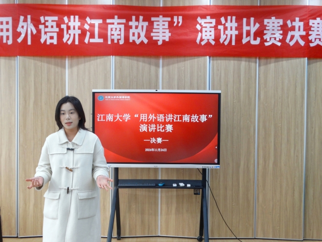 面向全校同学组织开展“用外语讲江南故事”主题演讲比赛。经过前期报名,初赛评选,共有32名选手进入决赛环节,决赛于11月24日在南区“一站式”学生活动中心举行。