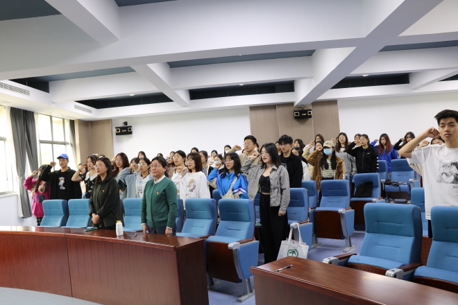 接着,学院分团委书记陆芳老师发布了两个培训班的学习计划。她向全体学员详细介绍了本次计划的目的和内容安排,采取线上线下、理论与实践相结合的模式,鼓励学员们积极参与马克思青年学习教育,主动参与实践过程,在学习活动中增强参与感,端正学习态度,严肃对待课程活动。苏婷同学作为上届优秀学员代表发言。她表示,在青马工程训练营中学习到了很多珍贵的马克思主义知识和精神,并希望大家在青马课程学习中注意:要有目标、有理想、有信仰;要在理论与实践的结合中守住初心;要不断奋斗,锻炼过硬本领。最后,全体学员在团务中心主任熊雪冰的领誓下重温了入团誓词。